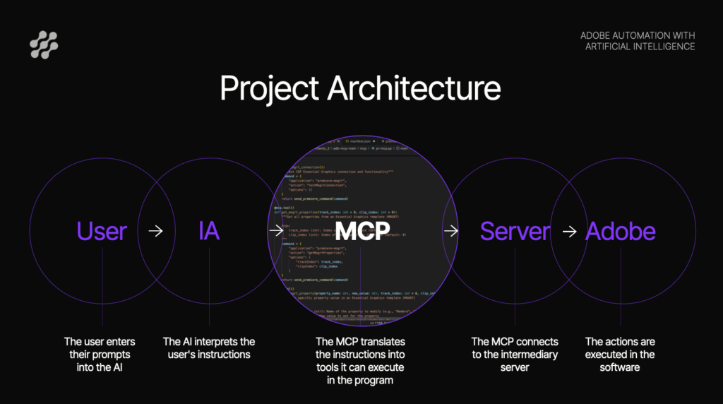 A few months ago, I discovered the existence of MCP protocols (Model Context Protocol) that allow you to control applications through a language model (LLM) like ChatGPT or Claude. I then started researching how to implement this for my main work tool: After Effects, although I was missing the key piece of how to get Adobe to listen to the instructions the AI was sending. Then I discovered Mike Chambers’ (@mikechambers) Photoshop and Premiere MCP, which connected Claude with Adobe applications via WebSocket servers, giving me the key to start programming the After Effects MCP that I can now use in my daily workflow. While Chambers opted for implementation with UXP plugins, I chose a CEP extension since UXP wasn’t yet available for After Effects. After several months working on the code, implementing functionalities and tools that the AI could use within the application, the first experiments conducted yield results worth sharing.